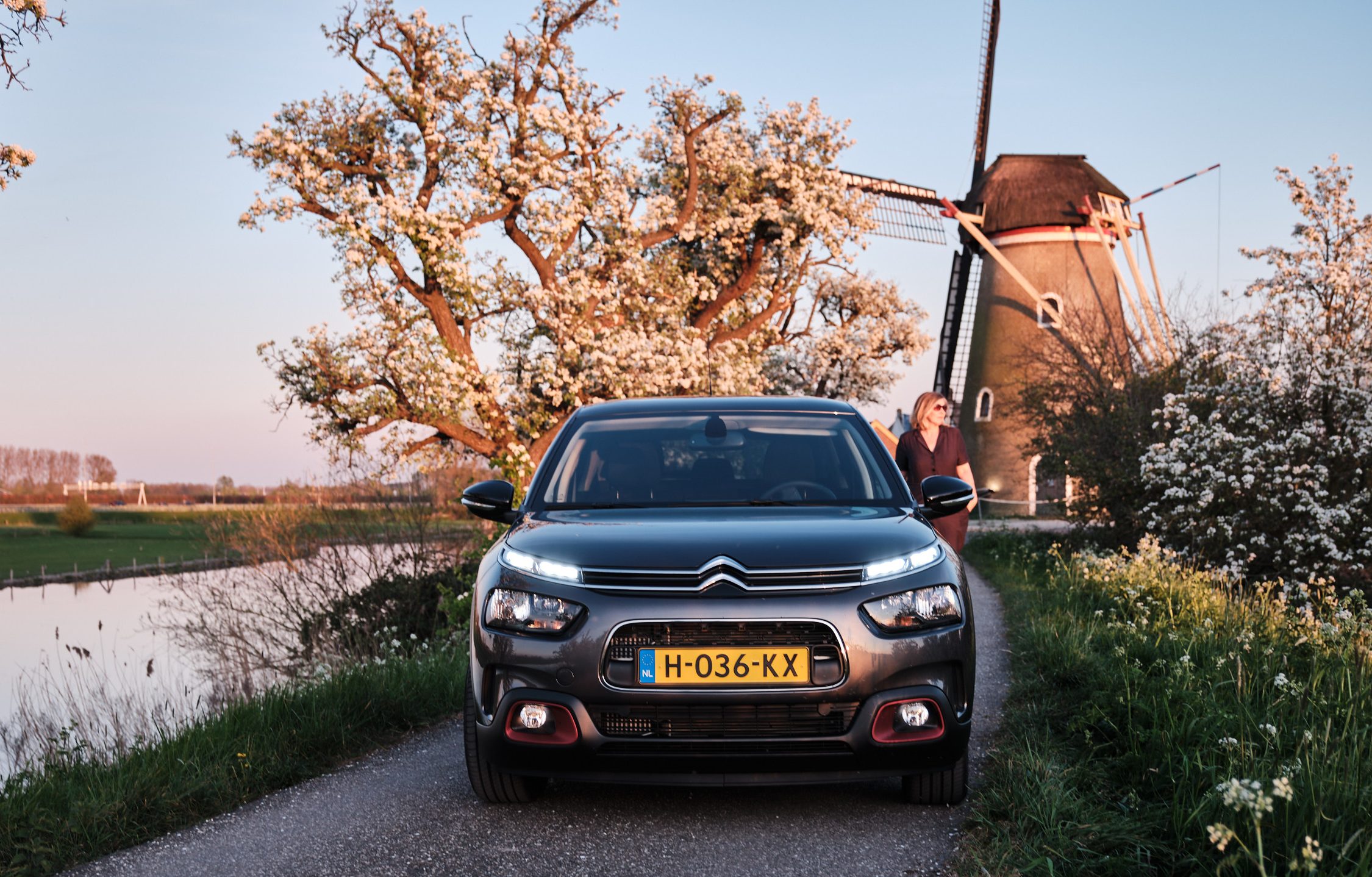 Die uiterlijke kenmerken en rijassistenties zeggen echter nog niks over het rijgedrag. En juist daar ben ik ontzettend door gecharmeerd. De hele rijbeleving laat zich omschrijven als uitermate comfortabel. En hoewel dit dan misschien juist saai klinkt is dat het dan weer helemaal niet. Ik rij echt heel veel kilometers in deze auto. Maar het liefst had ik mijn koffers achterin gegooid en was in 1 ruk doorgereden naar Parijs, of Barcelona… Helaas test ik deze auto in Corona-tijd. Ik vermijd de drukte en ga op zoek naar mooie en lege plekken. De fruitbomen staan vol in bloesem. In de Betuwe valt er dus veel te genieten. Ik ontdek een dijkje dat leidt naar een molen. Geen mens te bekennen, maar, oh zo mooi.